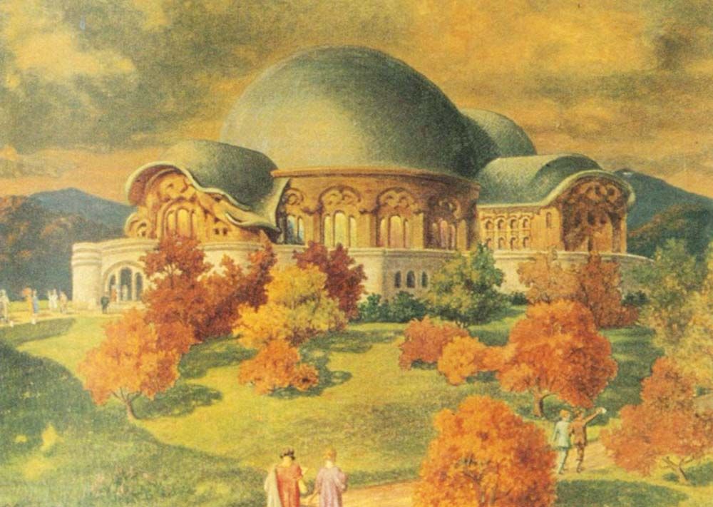 The following article is a composite of extracts from several articles from various sources. The main part of the article was translated from a long article found on the German Wikipedia. Parts of the article below (in blockquotes and cited) are from an article published in the Journal of Fine Arts titled The First Goetheanum: A Centenary for Organic Architecture